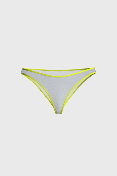 Chilot din tul pastel transparent, evidentiat cu elastic fluorescent ultra-plat in talie. Croiala usoara si confortabila. Logo Maison Close in contrast, plasat la spate. Fara captuseala de bumbac pentru un efect complet transparent.